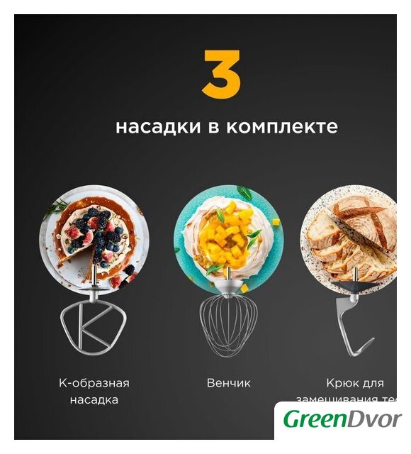 | Функции | взбивание, смешивание, замешивание дрожжевого теста |
