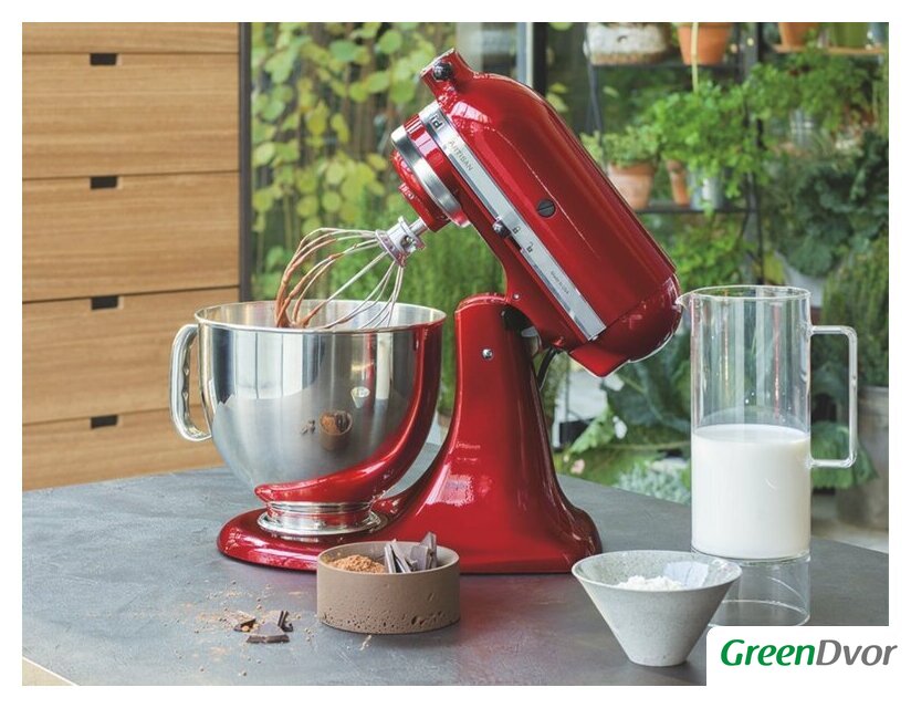 | Полная комплектация | стальная чаша объемом 4,8 л;cтальная чаша объемом 3 л;проволочный венчик;крюк для теста;лопатка для смешивания;лопатка с гибким ребром;защитный обод |