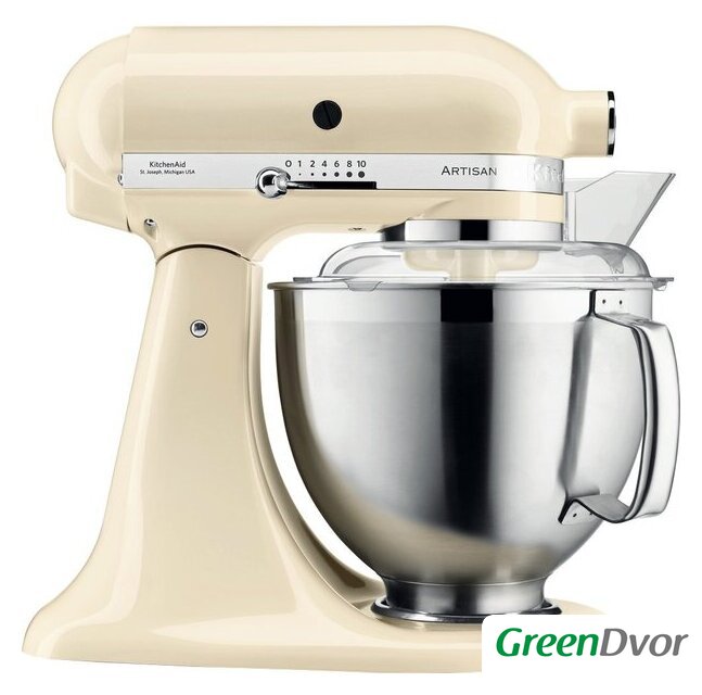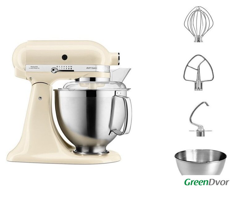 | Полная комплектация | чаша из нержавеющей стали объемом 4,8 л;чаша из нержавеющей стали объемом 3 л;прозрачный защитный обод;венчик;крюк для теста;насадка для смешивания |