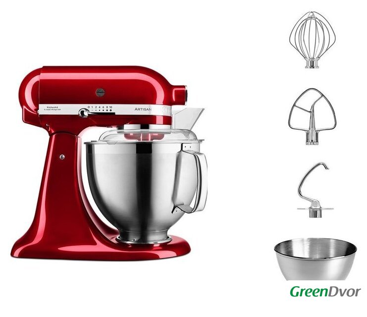 | Полная комплектация | Чаша из нержавеющей стали объемом 4,8 лЧаша из нержавеющей стали объемом 3 лПрозрачный защитный ободВенчикКрюк для тестаНасадка для смешивания |