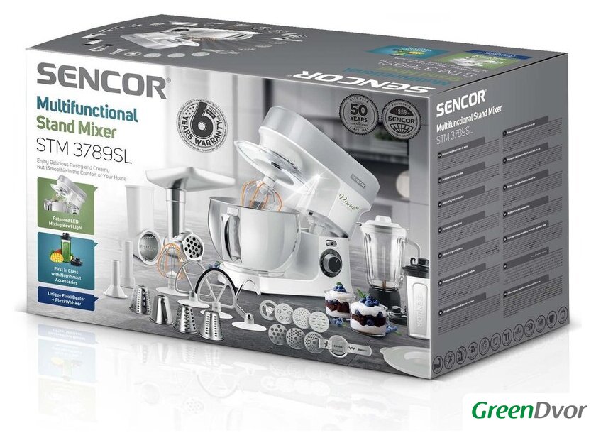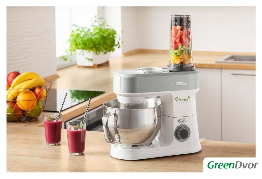 | Полная комплектация | Стеклянная чаша блендера 1,5лЧаша миксера 5лДве насадки для смешиванияНасадка для тестаВенчикМясорубка с насадками для регулировки степени измельчения, набивки колбас, изготовления пасты и насадкой-шаблоном для формовки печеньяТолкательОвощерезка с 4 терками (мелкая терка, крупная терка, измельчение, нарезка ломтиками)Миксер для смузи 0,6л с крышкой для использования в качестве дорожной бутылки |