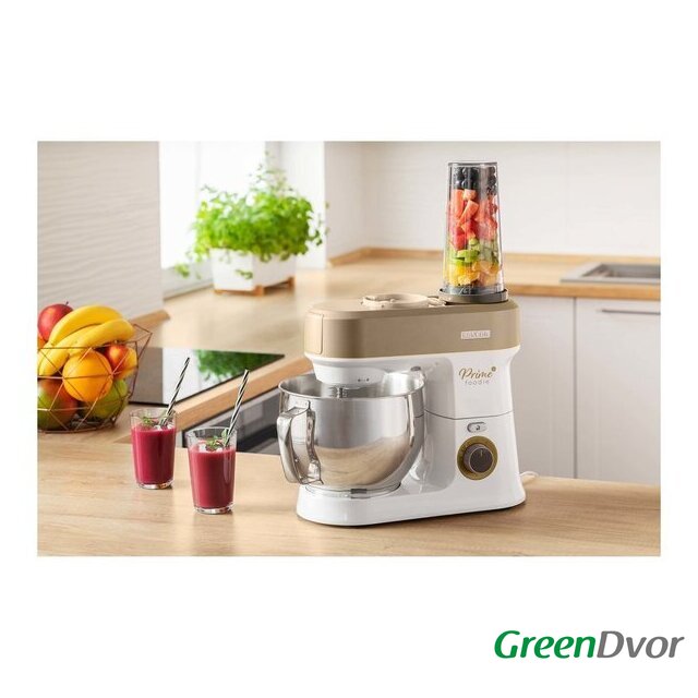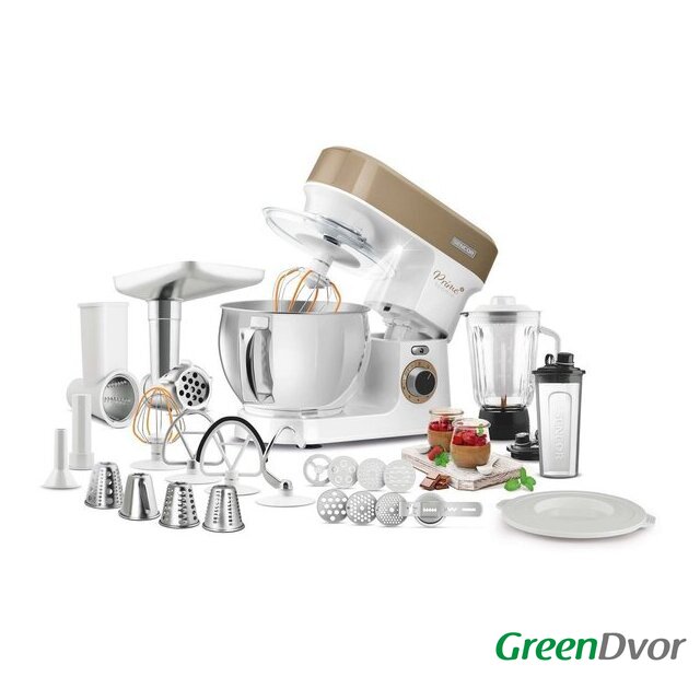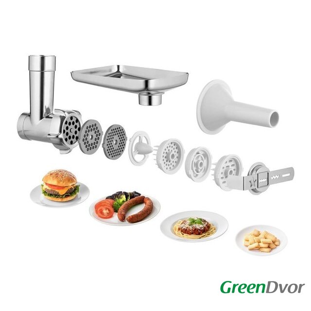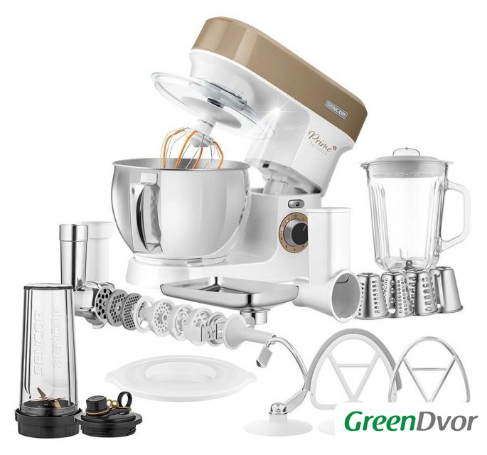| Полная комплектация | Стеклянная чаша блендера 1,5лЧаша миксера 5лДве насадки для смешиванияНасадка для тестаВенчикМясорубка с насадками для регулировки степени измельчения, набивки колбас, изготовления пасты и насадкой-шаблоном для формовки печеньяТолкательОвощерезка с 4 терками (мелкая терка, крупная терка, измельчение, нарезка ломтиками)Миксер для смузи 0,6л с крышкой для использования в качестве дорожной бутылки |