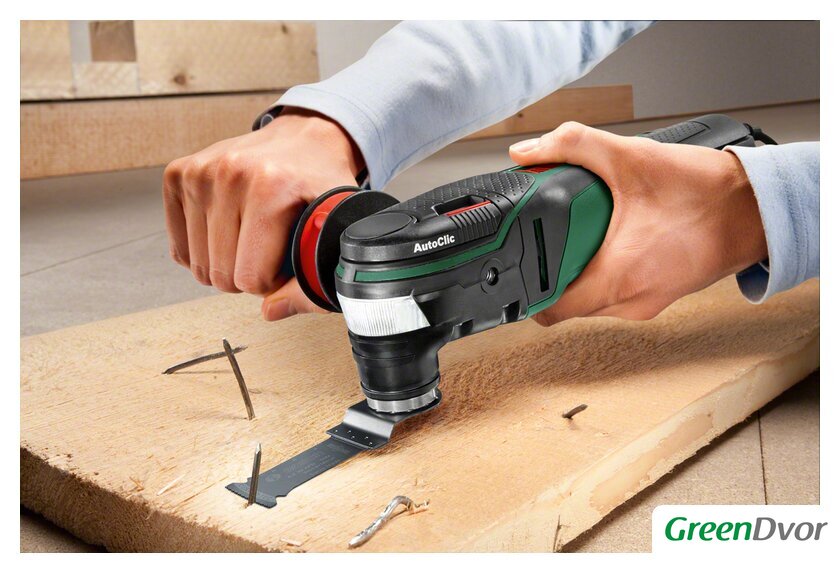 Комплект поставки | - Антивибрационная рукоятка- Биметаллический сегментированный пильный диск по древесине и металлу, 85 мм, ACZ 85 EB- Биметаллическое погружное пильное полотно по древесине и металлу PAII 65 APB- Набор дельташлифлистов- Дельташлифпластина 93 мм, AVZ 93 G- Погружное пильное полотно HCS по древесине, 32 x 40 мм, AIZ 32 EPC- Пылеудаляющий модуль- 4-ступенчатый ограничитель глубины для сегментированных пильных дисков |