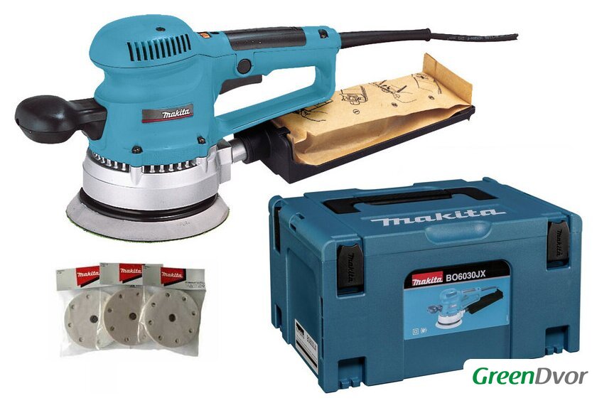| Комплект поставки | - Эксцентриковая шлифмашина;- Пылесборник;- 30 листов шлифовальной бумаги (10хP80 / 10хP120 / 10хP180);- Тарельчатый шлифовальный диск 150 мм;- Инструкция;- Кейс MakPac 3 |