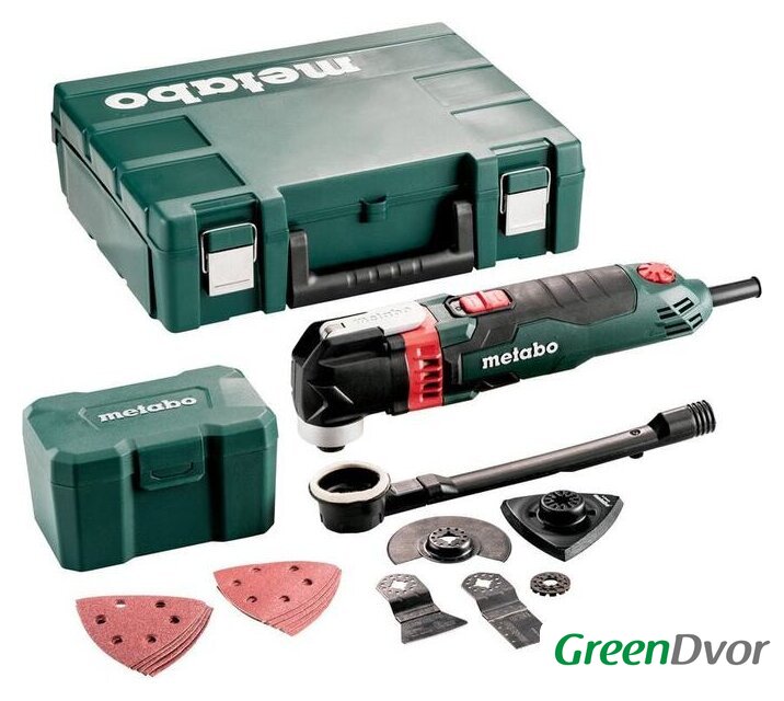 Комплект поставки | - Погружное пильное полотно 32 мм HCS (дерево)- Пластиковый кофр- Сегментное пильное полотно 85 мм BiM (дерево + металл)- Жестко закрепленный шабер 52 мм HCS- Треугольная шлифовальная пластина 93 мм на липучке- 5 шлифовальных листов на липучке, 93 мм P 80- 5 шлифовальных листов на липучке, 93 мм P 120- Переходник устройства пылеудаления- Мультиадаптер- Ящик для инструментов |