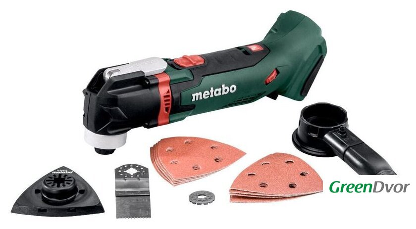 Комплект поставки | Погружное пильное полотно 32 мм HCS (дерево)Треугольная шлифовальная пластина 93 мм на липучке5 шлифовальных листов на липучке, 93 мм P 805 шлифовальных листов на липучке, 93 мм P 120Переходник устройства пылеудаленияМультиадаптерВставка в кофр MetaLocбез аккумуляторного блока, без зарядного устройства! |