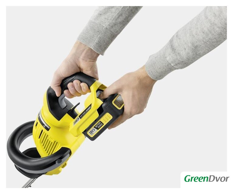 | Комплектация | - Аккумулятор Battery Power 18 В / 2,5 Ач (1 шт.);- Быстрозарядное устройство Battery Power 18 В (1 шт.);- Рукоятка, поворотная;- Функция пиления;- Защитная планка;- Защитный элемент на конце ножа;- Приспособление для подвешивания;- Насадка для удаления срезанных листьев. |