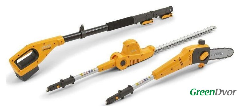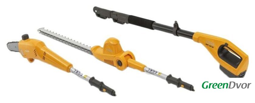 Комплектация | - высоторез с цепной пилой- ножницы для живой изгороди- вал- 1 аккумулятор- зарядное устройство |