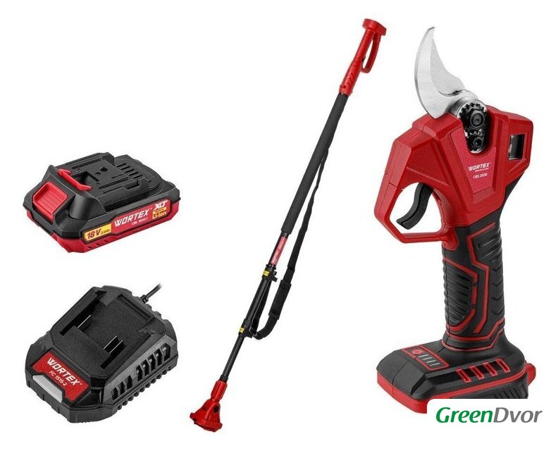 Комплектация | - Секатор;- Точильный камень;- Смазка для ножа;- Руководство по эксплуатации;- Ключи для зажима оснастки (2 шт);- Аккумулятор WORTEX CBL 1820-1 (1 шт.);- Зарядное устройство WORTEX FC 1515-2 (1 шт.);- Телескопическая штанга для секатора WORTEX CBS 2030 (1 шт.). |