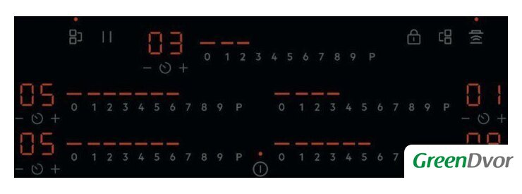 | Подробная информация о конфорках | Левая передняя – 2300/3200 Вт, 210 мм; Задняя средняя – 2300/3200 Вт, 210 мм; Правая передняя – 2300/3200 Вт, 210 мм; Левая задняя – 2300/3200 Вт, 210 мм; Правая задняя – 2300/3200 Вт, 210 мм |