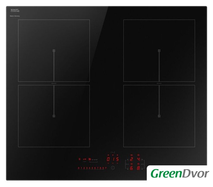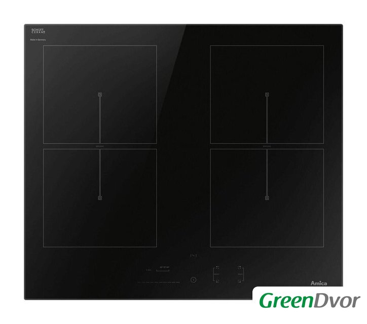 | Подробная информация о конфорках | 4 конфороки 210x190 мм объединяются в две свободные зоны нагрева 185x380,5 мм |