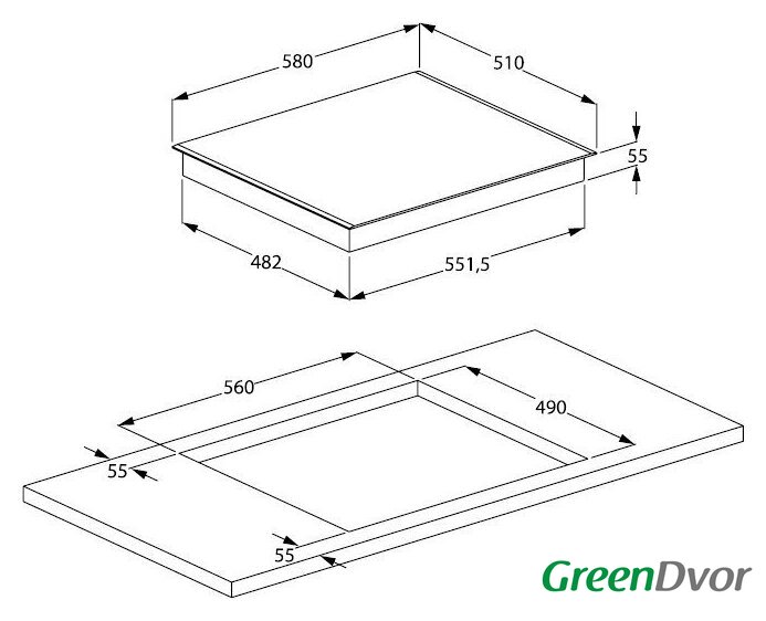 | Подробная информация о конфорках | Передняя левая (кВт) Ø 180 2000 ВтЗадняя левая (кВт) Ø 145 1600 ВтПередняя правая (кВт) Ø 145 1600 ВтЗадняя правая (кВт) Ø 180 2000 Вт |