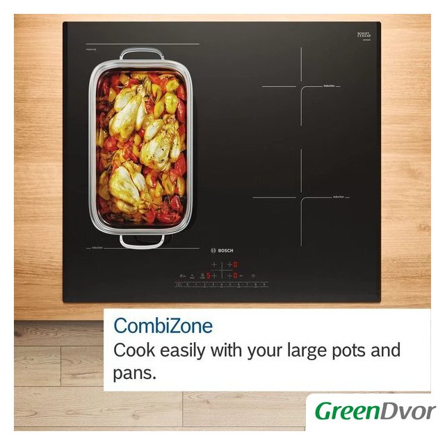 | Подробная информация о конфорках | Зона приготовления спереди слева: 190 мм, 210 мм, 2,5 кВт (макс. мощность 3,7 кВт) Зона приготовления сзади слева: 190 мм, 210 мм, 2,5 кВт (макс. мощность 3,7 кВт) Зона приготовления сзади справа: 145 мм, 1,6 кВт (макс. мощность 2,2 кВт) Зона приготовления спереди справа: 180 мм, 2 кВт (макс. мощность 3,1 кВт) |