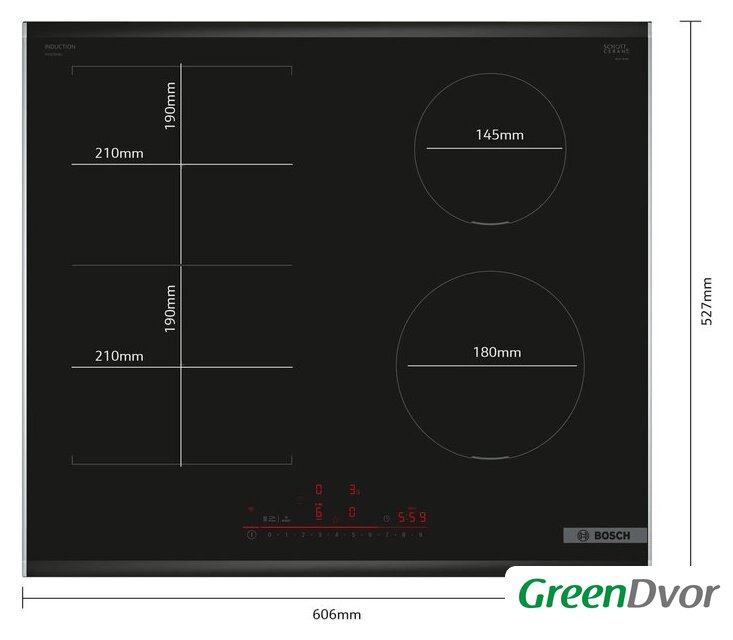 | Подробная информация о конфорках | 1 x 1.6 (2.2) kW, 1 x 2.0 (3.1) kW, 2 x 2.5 (3.7) kW |