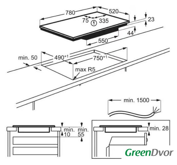 | Подробная информация о конфорках | Левая передняя: 2300/3200 Вт, 210 ммЛевая задняя: 2300/3200 Вт, 210 ммПередняя (??центральная): 1400/2500 Вт, 145 ммПравая задняя: 2300/3600 Вт, 240 мм |