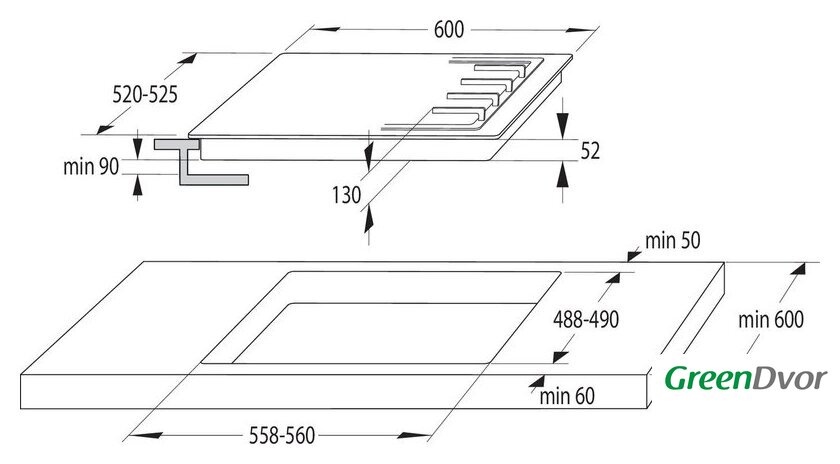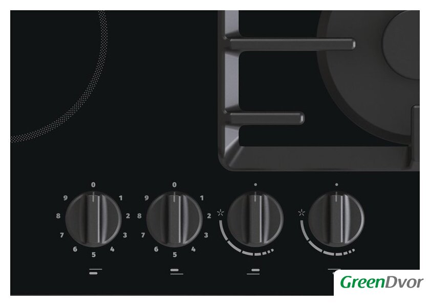 | Подробная информация о конфорках | Передняя левая: Ø 14.5 см, 1.2 кВт,Передняя правая: 1.05 кВт,Задняя левая: Ø 18 см, 1.8 кВт,Задняя правая: 3 кВт |