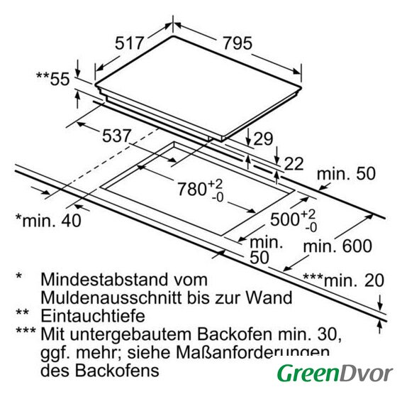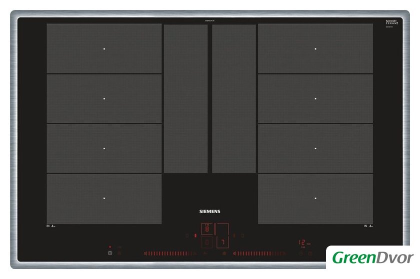 | Подробная информация о конфорках | Зоны приготовления:2 x 400 мм x 230 мм, 3,3 кВт (максимальная мощность 3,7 кВт) или 4 x 190 мм, 2,2 кВт (максимальная мощность 3,7 кВт) |