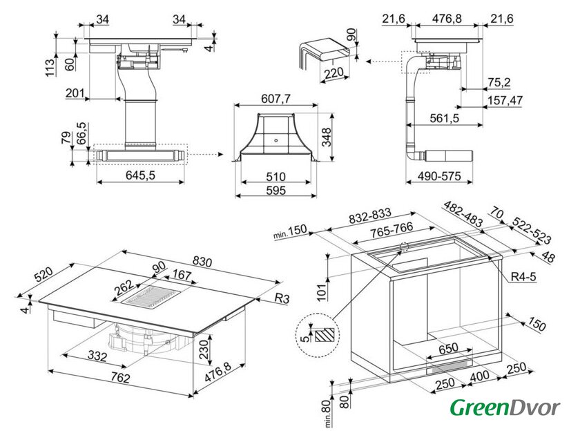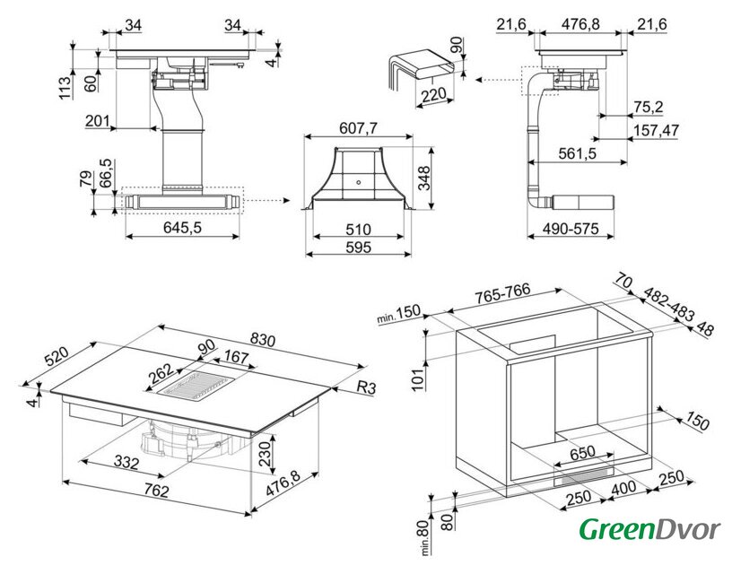 | Общая мощность | 7 620 Вт (суммарная с вытяжкой) |