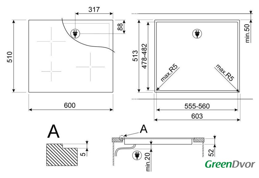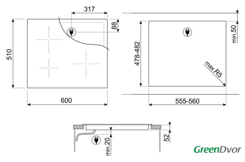 | Овальные/прямоугольные конфорки | нет |