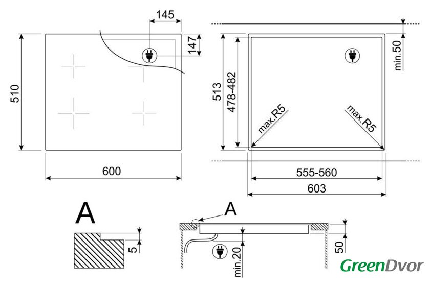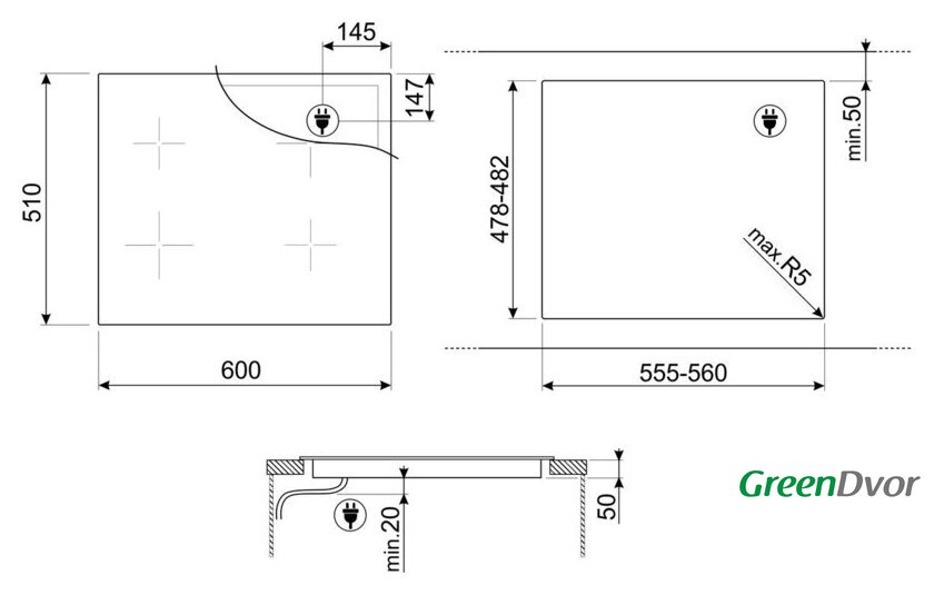 | Овальные/прямоугольные конфорки | нет |