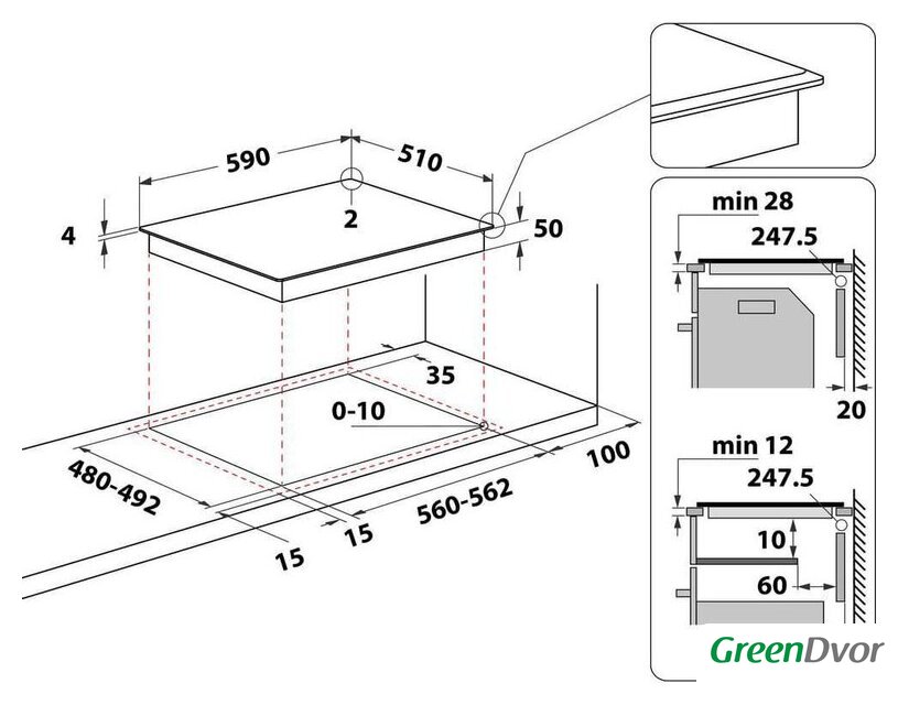 | Подробная информация о конфорках | 1 свободная зона, 2 варочные зоны |
