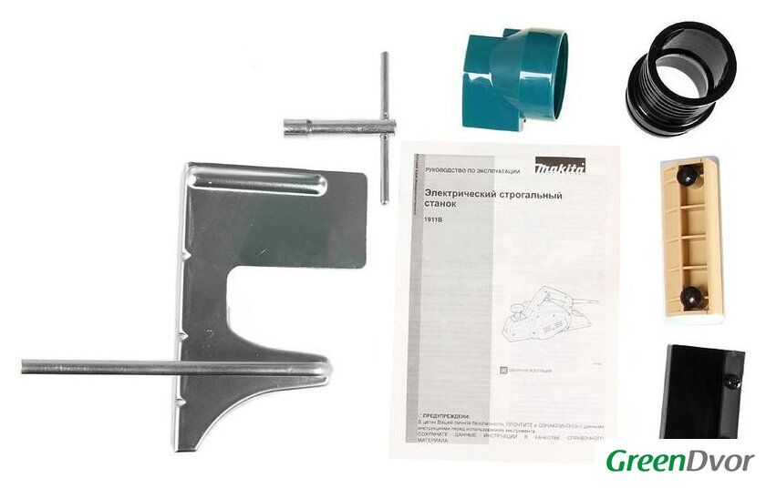 Комплект поставки | твердосплавный нож, держатель для дополнительной заточки ножа, параллельный упор, калибр для установки ножа, патрубок для пылесоса, торцовый ключ |