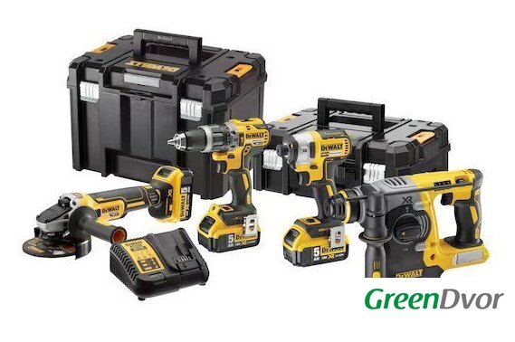 | Комплектация | - Компактный бесщеточный шуруповерт DCD796- Бесщеточный ударный винтоверт DCF887- Бесщеточная шлифовальная машина DCG405- Бесщеточный перфоратор DCH273- Аккумуляторы емкостью 5,0 Ач - 3шт- Зарядное устройство с разными напряжениями |