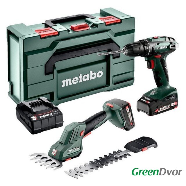 | Комплектация | - Аккумуляторные ножницы для травы и кустов Metabo SGS 18 LTX Q;- Аккумуляторный шуруповерт Metabo BS 18;- 2 литий-ионные аккумуляторные батареи емкостью 2,0 Ач серии Li-Power 18 В;- зарядное устройство SC 30;- кейс MetaBox 165 L. |