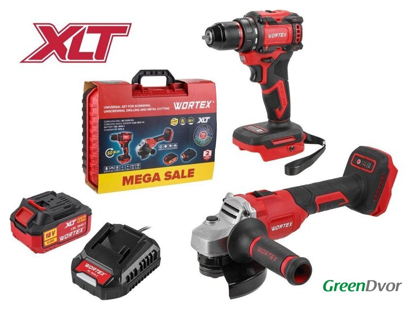 | Состав набора | дрель-шуруповерт, угловая шлифовальная машина |