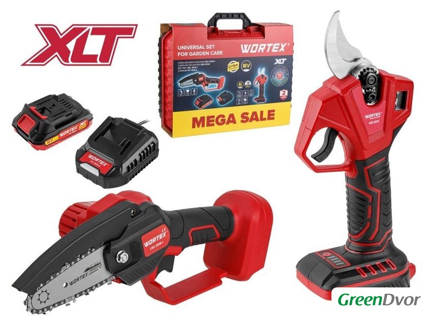 Комплектация | - Аккум. мини-пила WORTEX LX CEC 2518-1 - 1 шт.;- Аккум. секатор WORTEX CBS 2030 - 1 шт.;- Аккумулятор WORTEX CBL 1820-1 18.0 В, 2.0 Ач, Li-Ion ALL1 - 1 шт.;- Зарядное устройство WORTEX FC 1515-2 ALL1 2 А - 1 шт.; |