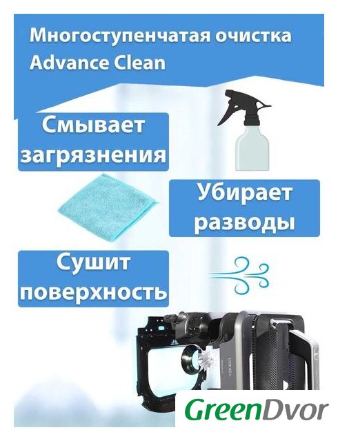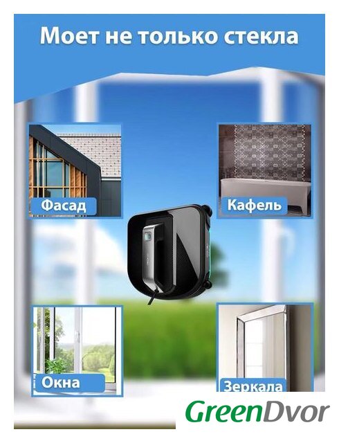 Комплектация | Удлинитель, Адаптер питания, 2 комплекта микрофибр, Спрей для окон, Робот-мойщик, Пульт управления, Кабель, Страховочный трос |