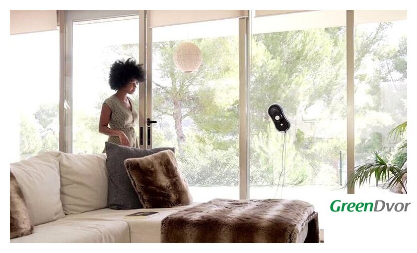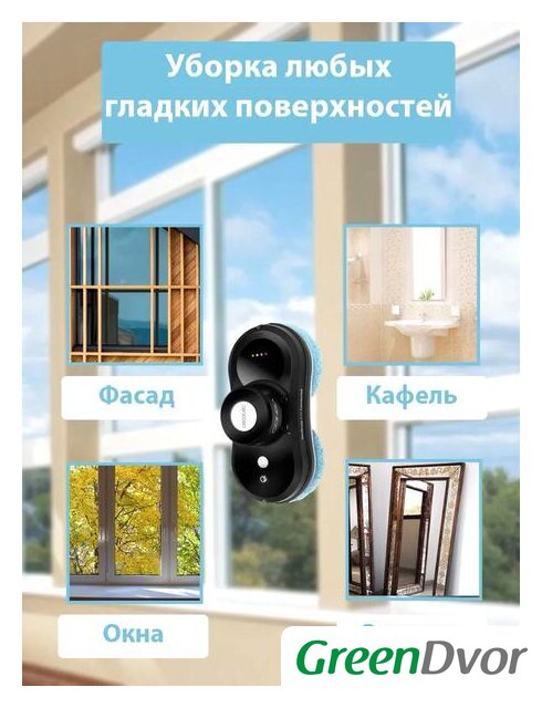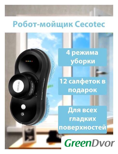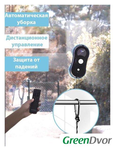 Комплектация | Адаптер питания, Пульт ДУ, Шнур питания, Робот для чистки стекол, Страховой трос, 12 шт микрофибр |