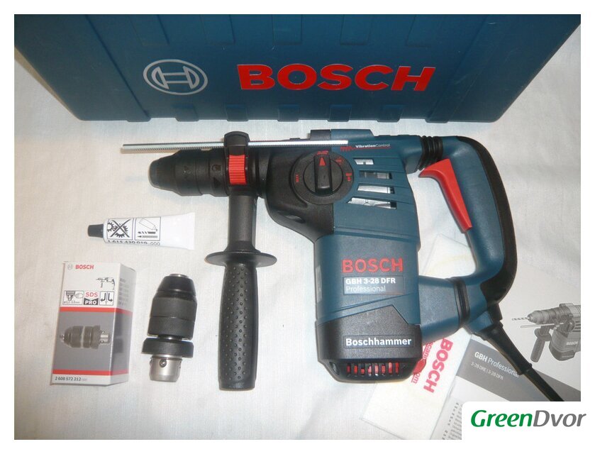 | Набор принадлежностей | (салфетка, тюбик со смазкой, сменный патрон SDS-plus) |