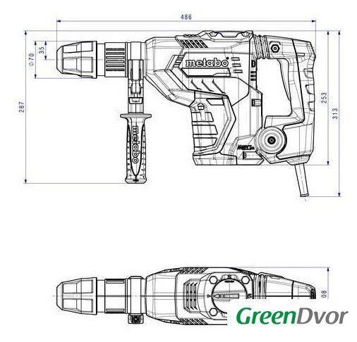 Комплект поставки | - Прорезиненная дополнительная рукоятка;- Ограничитель глубины сверления;- Смазка для хвостовика инструмента;- Салфетка для очистки;- Пластиковый кофр. |