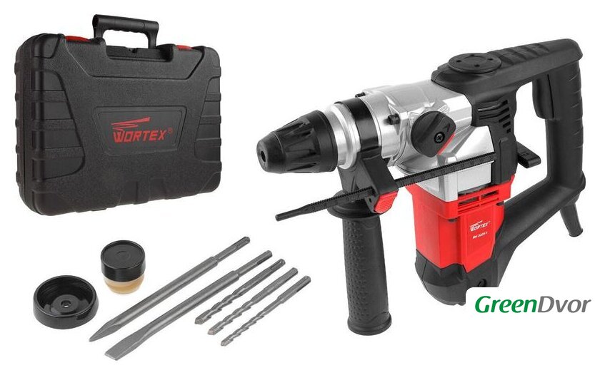 Комплект поставки | - ограничитель глубины сверления- дополнительная рукоятка- пылесборник- 3 сверла- 2 зубила- смазка для буров- документацияПоставляется в пластиковом кейсе |