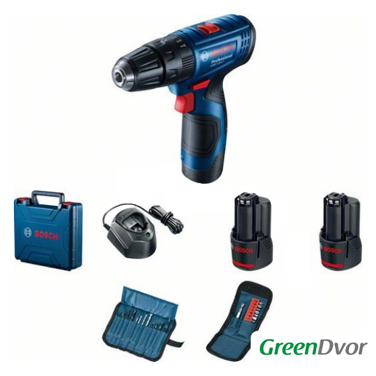 Комплектация | - 2 аккумулятора 2 А/ч- зарядное устройтсво- набор бит- набор сверл- кейс |