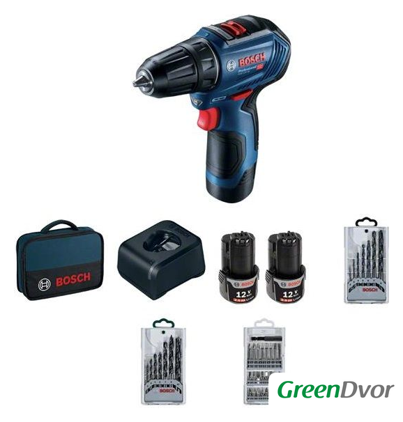 | Комплектация | - зарядное устройство- 2 аккумулятора- сумка- набор бит и свёрл |