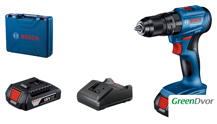 Комплектация | - дрель-шуруповерт- 2 аккумулятора GBA 18V 2.0Ah- з/у GAL 18V-20 Professional- кейс |