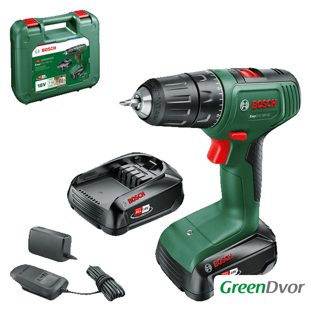 Комплектация | - Аккумуляторная дрель-шуруповерт- 2 аккумулятора PBA 18V 2Ah- Двойная бита- Зарядное устройство AL 18V-20- Переносной кейс |