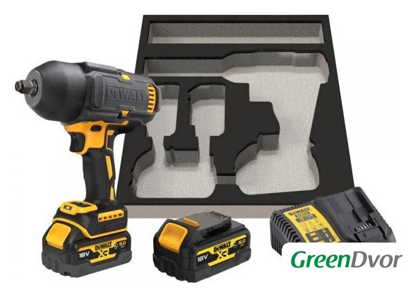 Комплектация | - Гайковерт- Аккумуляторная батарея 18V XR Li-lon 5 Ач - 2 шт.- Зарядное устройство - Поролоновый ложемент |