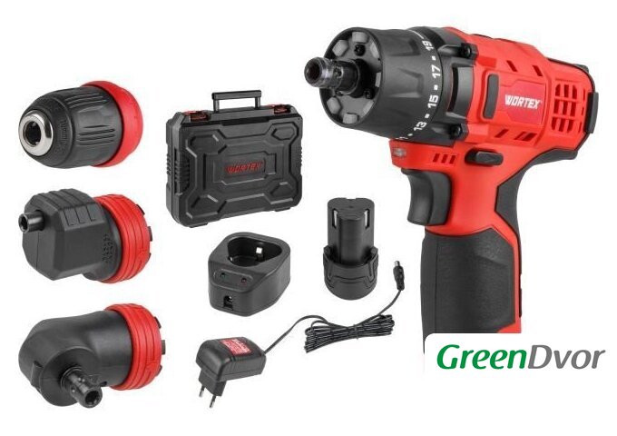 Комплектация | - Аккумуляторная батарея 1.5 Ач - 2 шт.;- Зарядное устройство - 1 шт.;- БЗП быстросъемный патрон 10 мм - 1 шт.;- Насадка угловая быстросъемная - 1 шт.;- Насадка со смещенным центром быстросъемная - 1 шт.;- Кейс. |