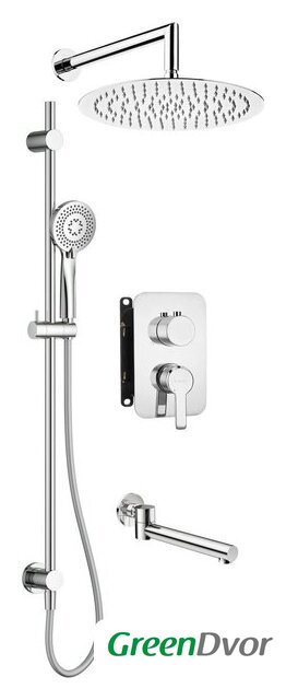 | Комплектация | верхний душ, штанга, ручной душ (лейка), держатель лейки, шланг, смеситель, излив для ванны |