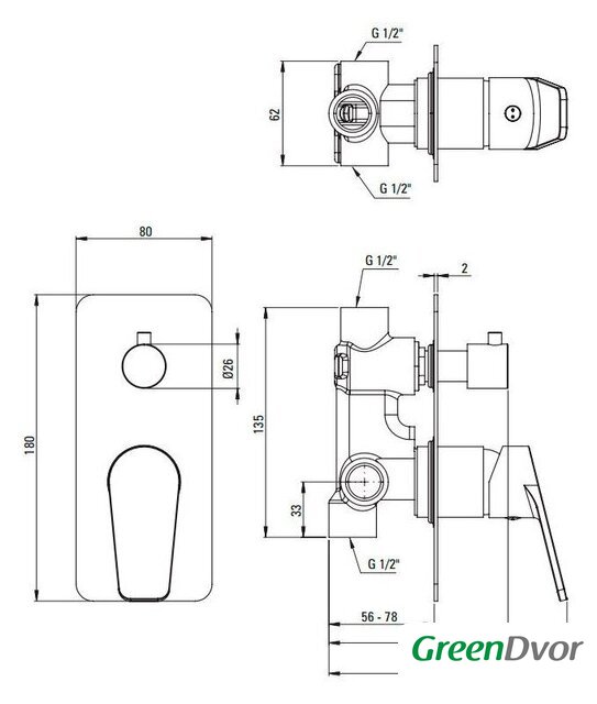 | Форма верхнего душа | прямоугольная |