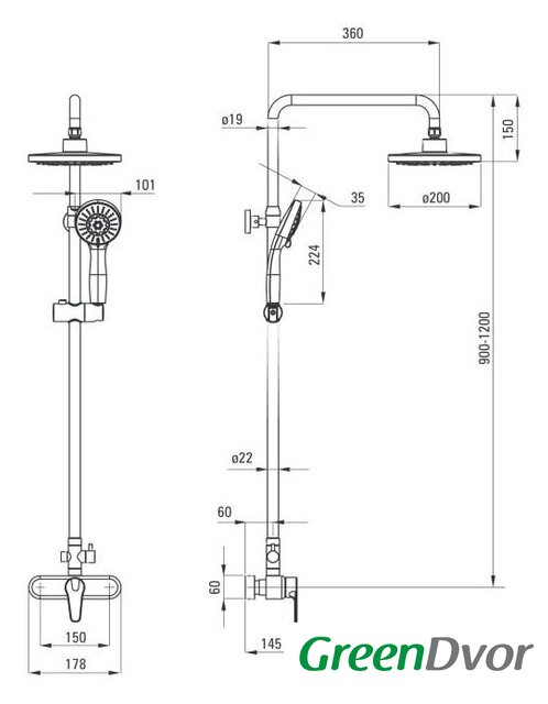 | Комплектация | верхний душ, штанга, ручной душ (лейка), держатель лейки, шланг, смеситель |