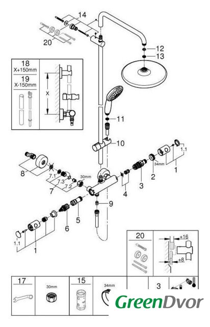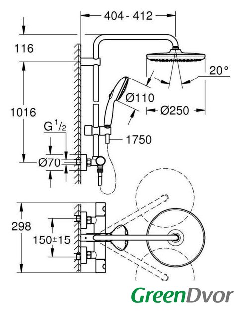 | Комплектация | верхний душ, штанга, ручной душ (лейка), держатель лейки, шланг, смеситель |