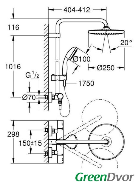 | Вылет верхнего душа | 404 мм |