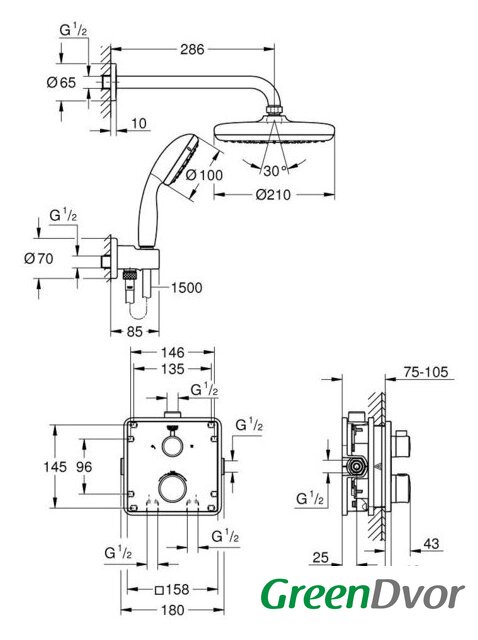 | Диаметр (ширина) верхнего душа | 210 мм |