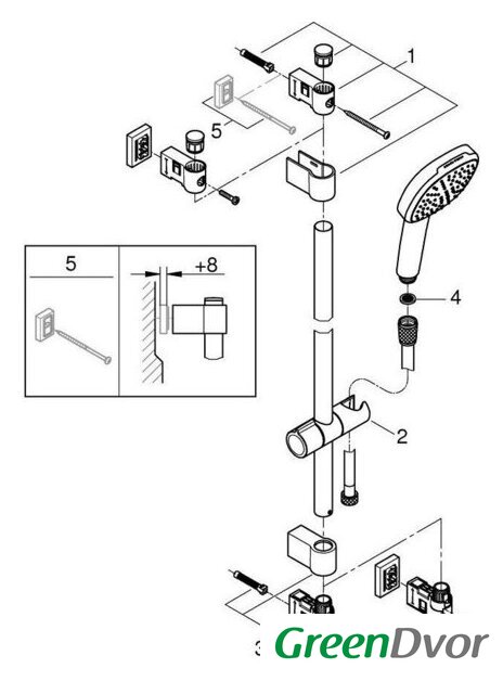| Комплектация | штанга, ручной душ (лейка), держатель лейки, шланг |