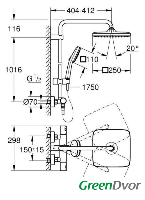 | Форма верхнего душа | прямоугольная |
