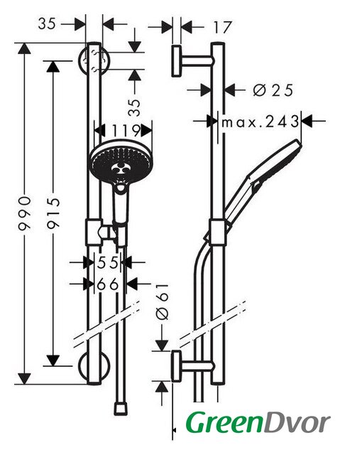 | Комплектация | штанга, ручной душ (лейка), держатель лейки, шланг |